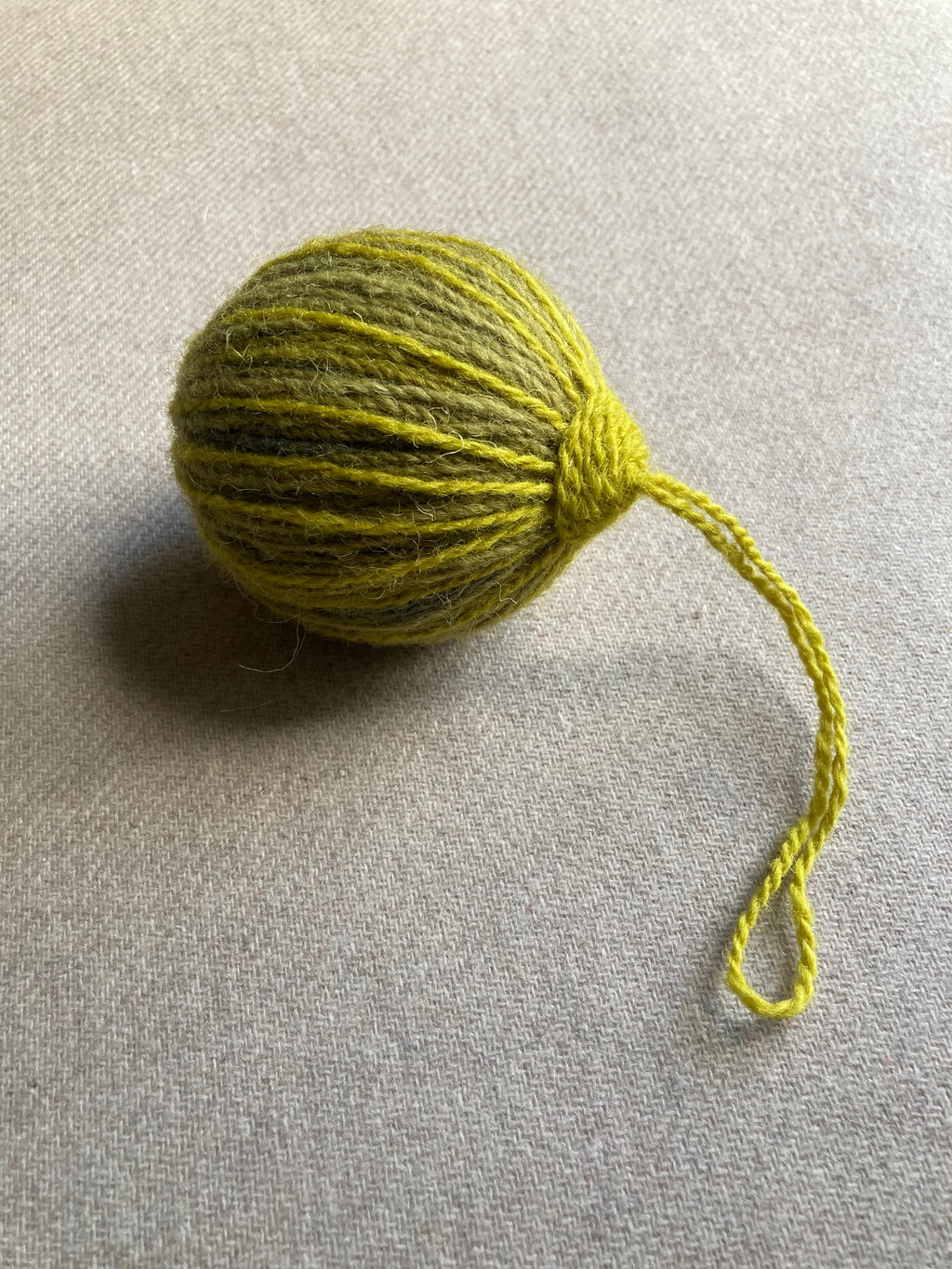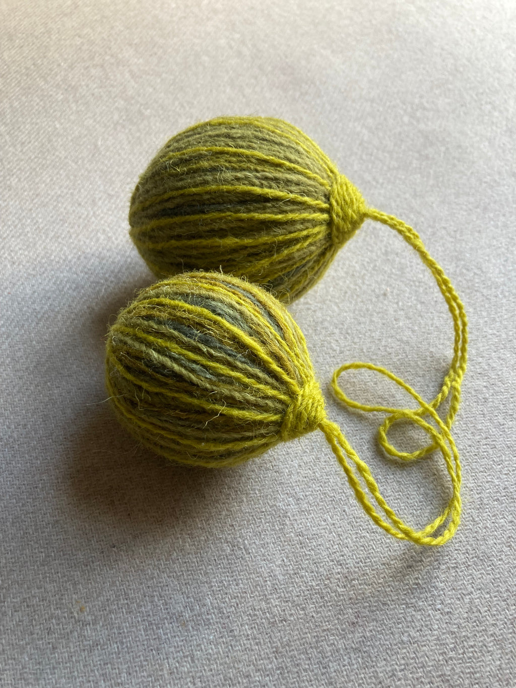 Inspired by the many conkers, acorns and seed pods I’ve been stuffing my pockets with over the last few months, these baubles are hand sculpted using 100% recycled textile and yarn offcuts from the studio and finished with highlight details from our stocks of yarn.