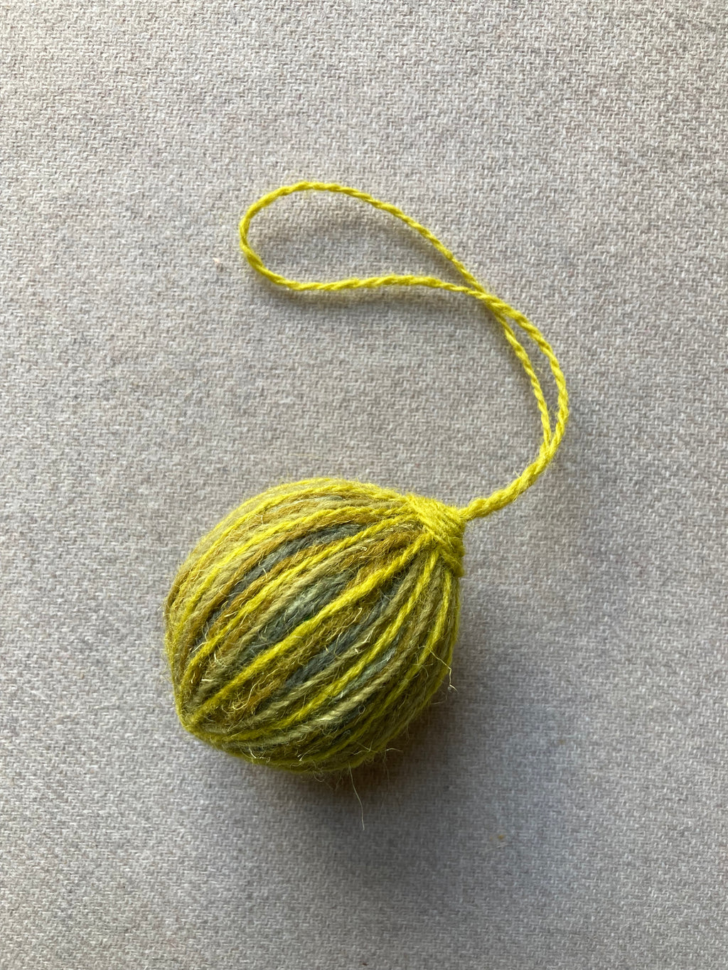 The smaller the offcuts, the trickier they are to use, but as they’re generated with every make over time they add up to a large volume of material. These baubles are created using these tiny offcuts, yarn cuttings and stock yarns. Designing and making these baubles has given me a new perspective for all the trimmings I didn’t previously know what to do with and I’m excited to see where this will take me going forward.