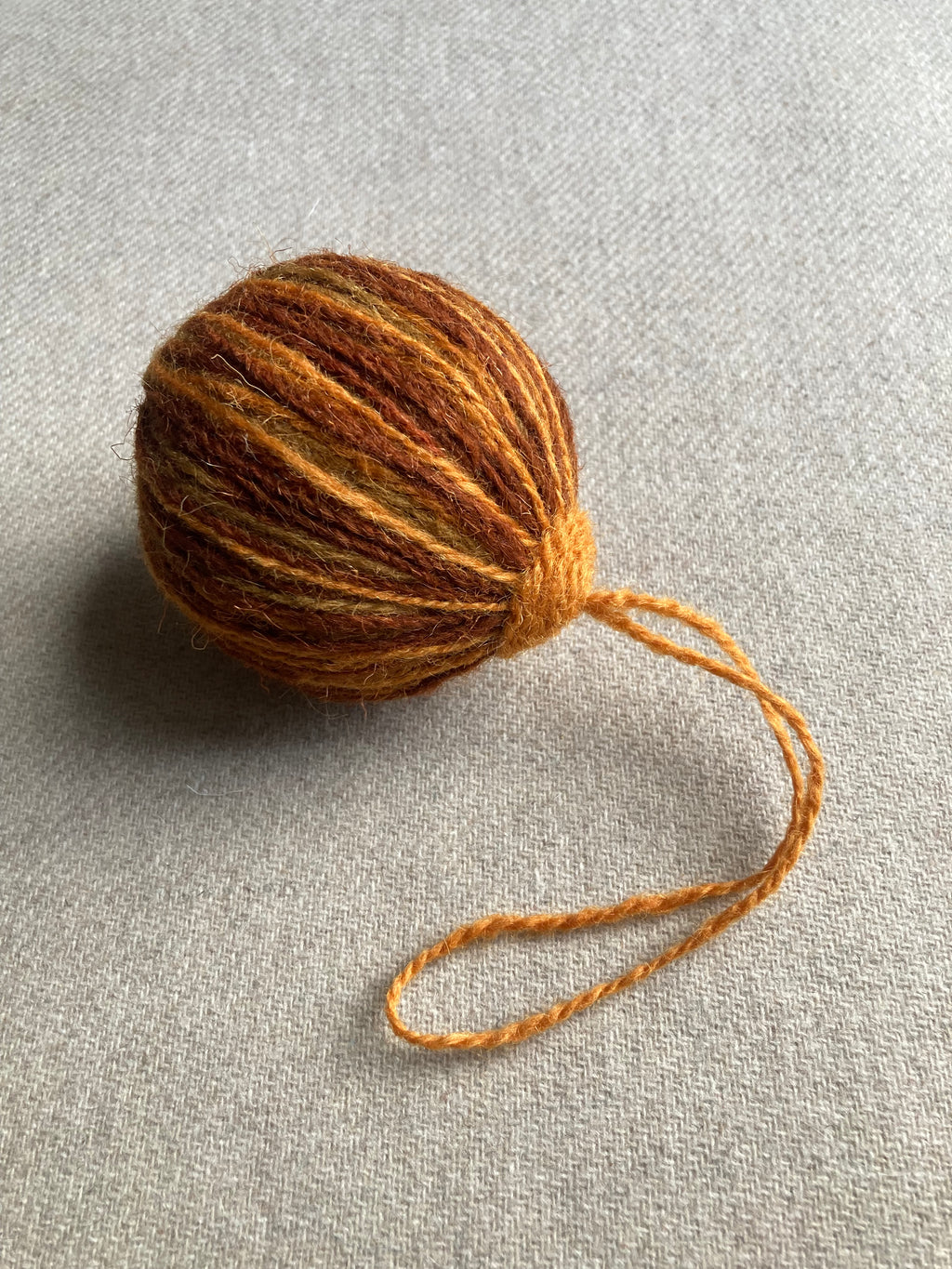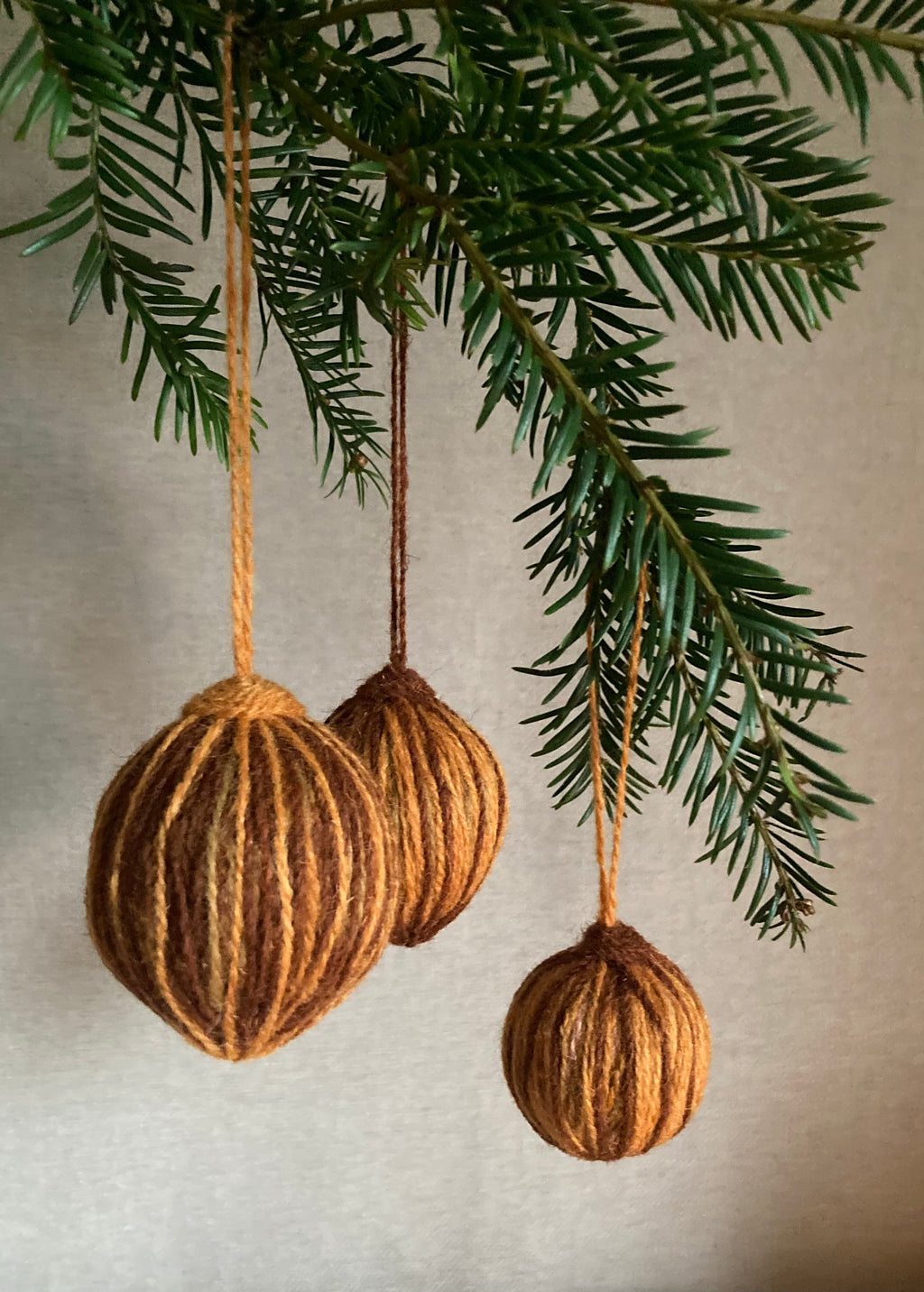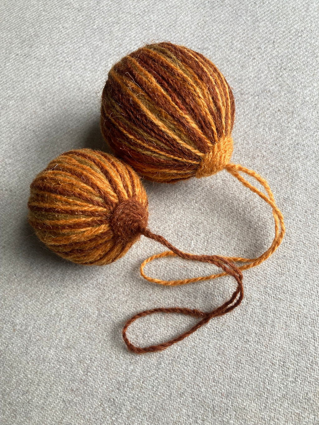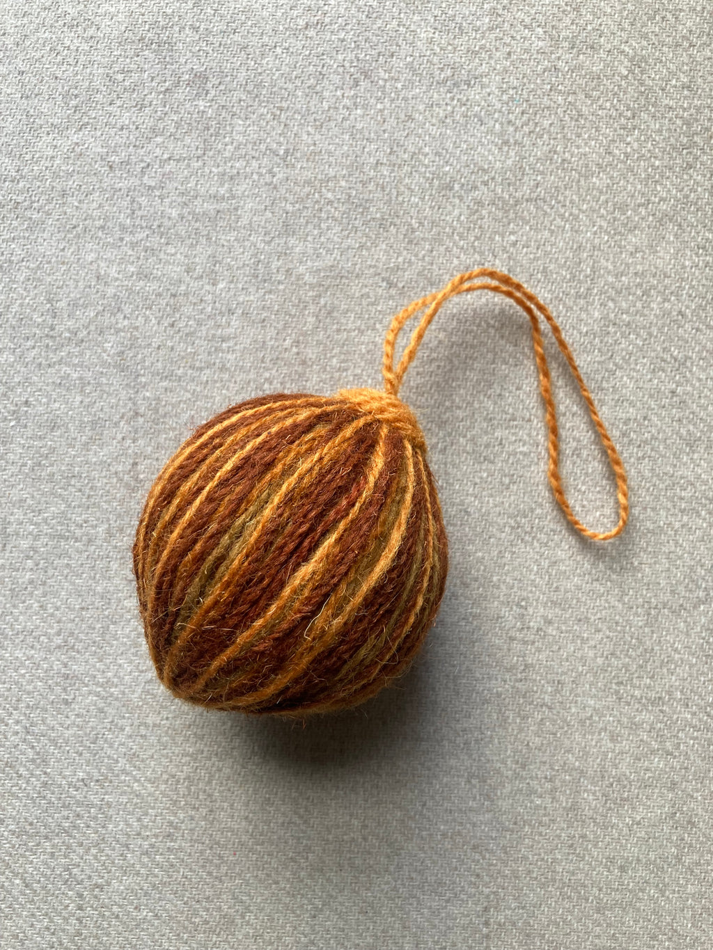 Inspired by the many conkers, acorns and seed pods I’ve been stuffing my pockets with over the last few months, these baubles are hand sculpted using 100% recycled textile and yarn offcuts from the studio and finished with highlight details from our stocks of yarn.