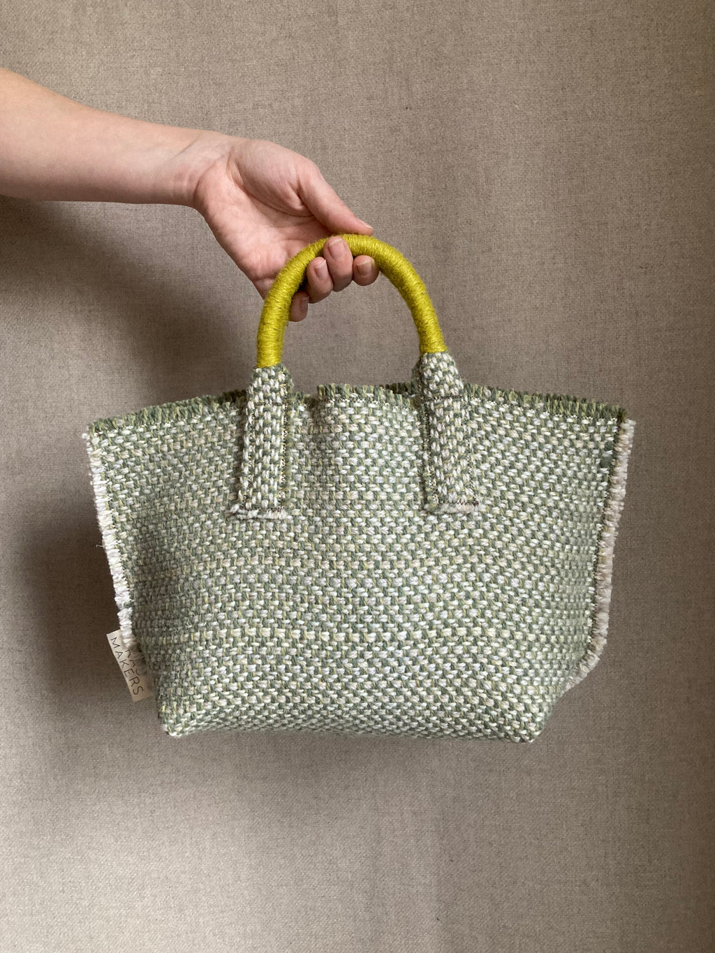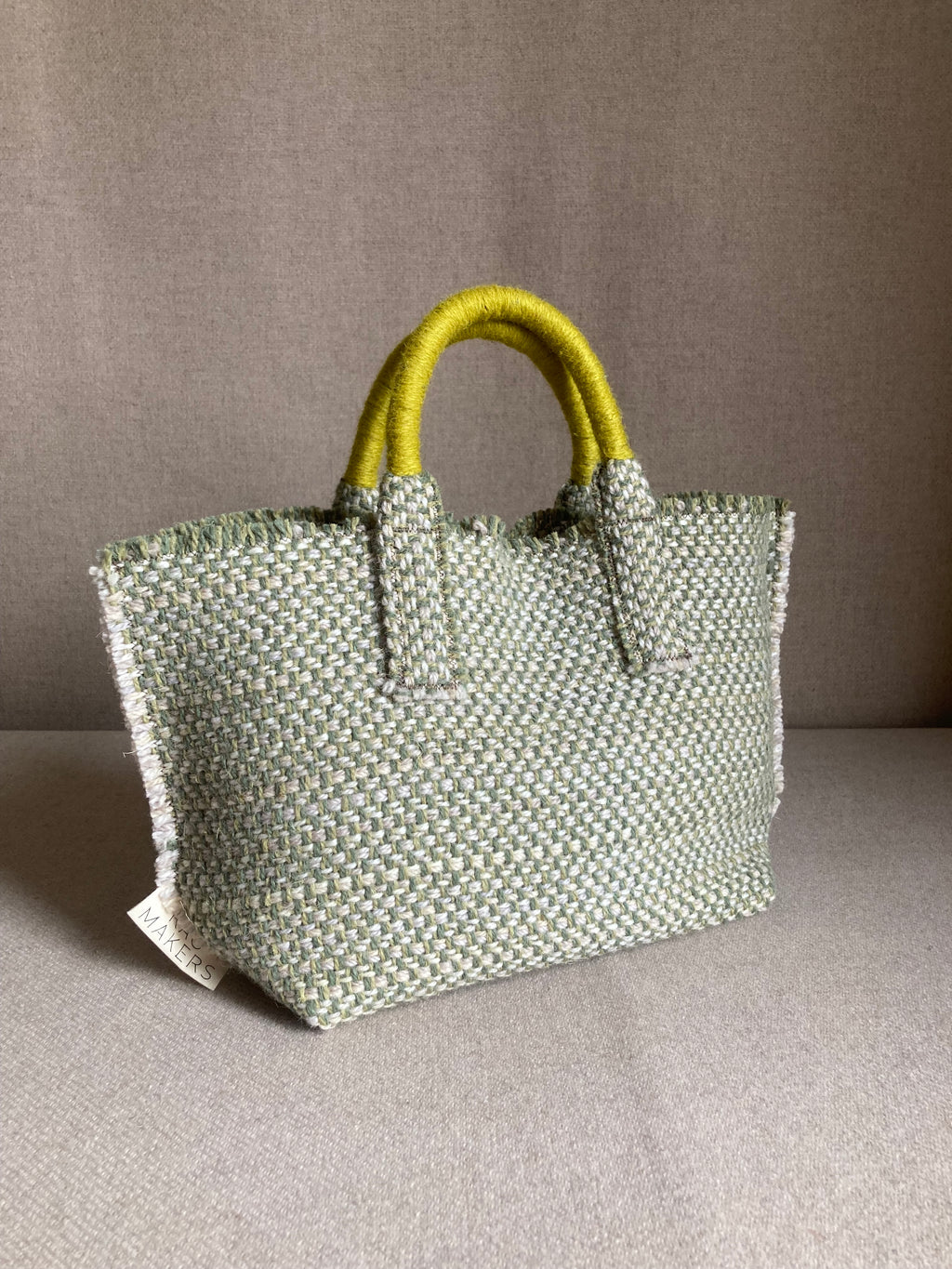 Available in a variety of weaves and colours, our Milnsbridge bags all have our signature bound handles. We stuff the handles with off-cuts of Milnsbridge cloth and then bind them by hand using the same yarns we use to weave with. It’s a time consuming process, but the solid bound handles create a great contrast in look and feel to the rest of the bag.