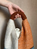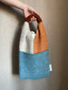 The handle is quite intentional too, so it can be hung up and clearly on view during the day as a colourful, visual reminder - ready for when you have a moment to yourself.  The handle is bound using a knitted cord handmade from our stock of yarns, previously used to weave our Milnsbridge cloth with – it does make it easier to carry about the house too.